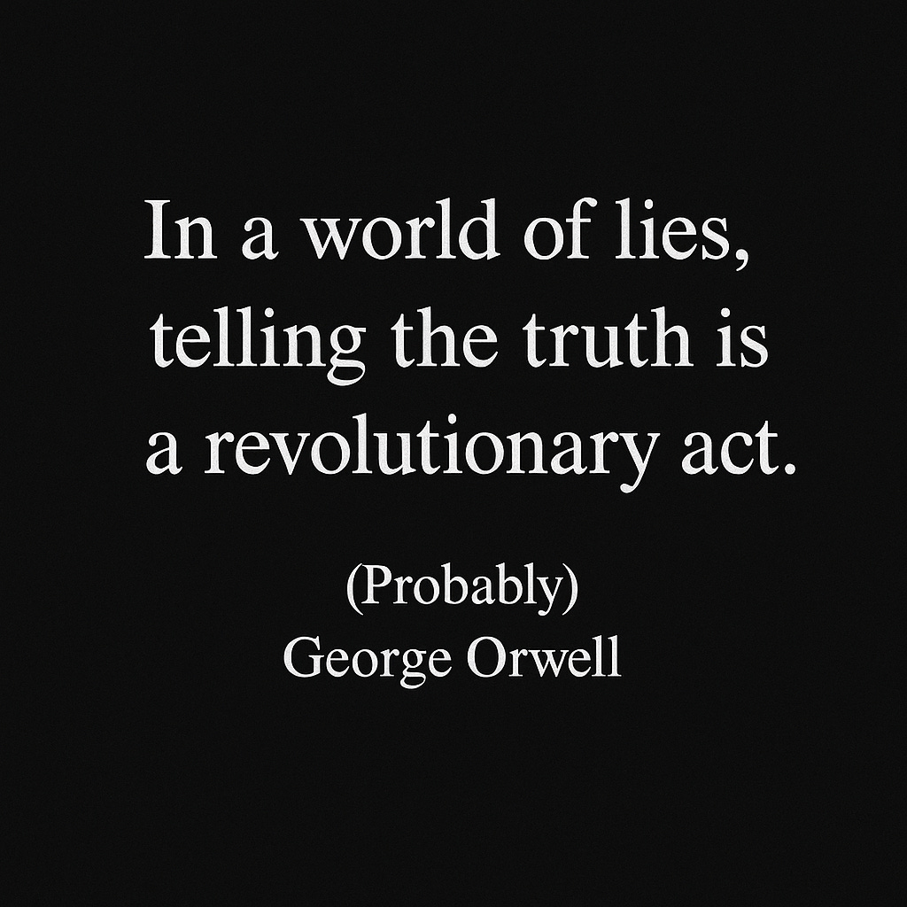 This quote is often attributed to George Orwell (1903-1950), a British novelist and political commentator best known for 1984 and Animal Farm, two prescient explorations of how power corrupts truth.