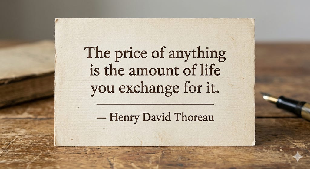 Henry David Thoreau (1817–1862) was an American author, philosopher, and naturalist best known for an experiment he conducted in the woods of Concord, Massachusetts. In 1845, he built a small cabin by hand on the shores of Walden Pond and lived there for two years, two months, and two days — deliberately stripping his life down to its essentials to answer a question most people never stop long enough to ask: What do I actually need? His account of that experiment, Walden, remains one of the most searching examinations of the relationship between how we spend our days and what we say we value.